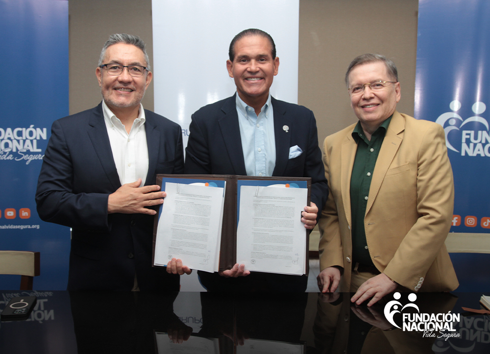 El acuerdo fue firmado por José Luis Camacho Miserendino, Presidente de Nacional Seguros Vida y Salud, y Víctor Elías Terán, Director Ejecutivo de PROCOSI, con la presencia de Julio César Caballero, Director Ejecutivo de la Fundación Nacional Vida Segura.